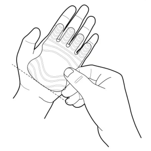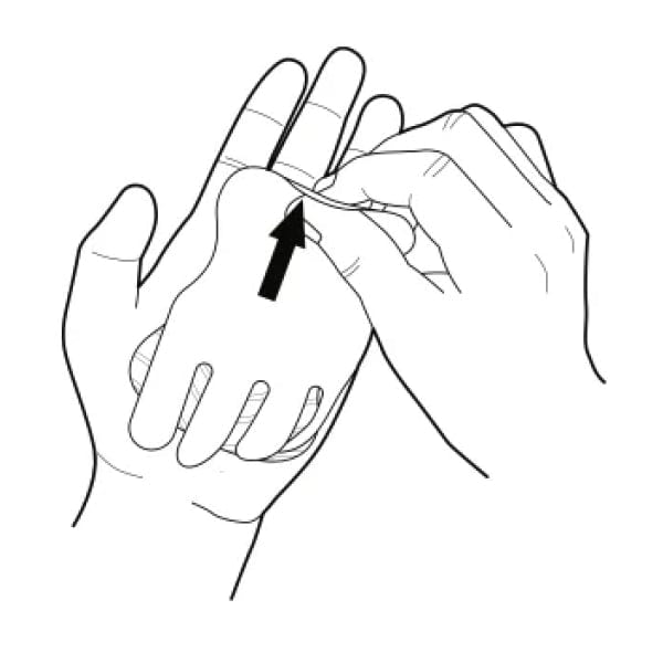 Remove the bottom half of the backing paper, attach to your palm, then remove the remaining backing paper and pat down fully.