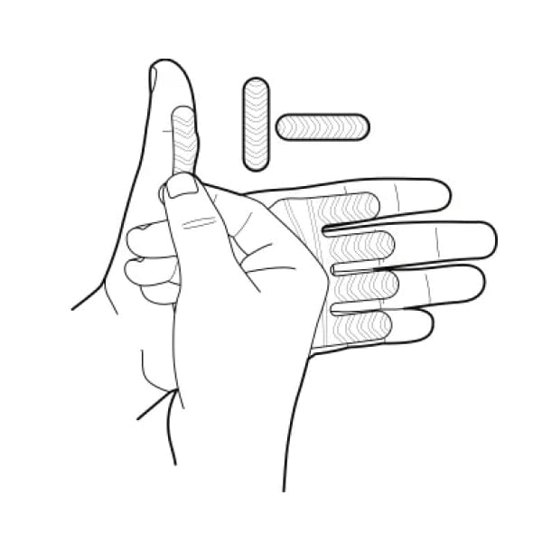 Peel the grip backing and apply the bottom of the grip at the base of your palm. Grab the grip backing paper and slowly peel and pull the grips towards your fingers.